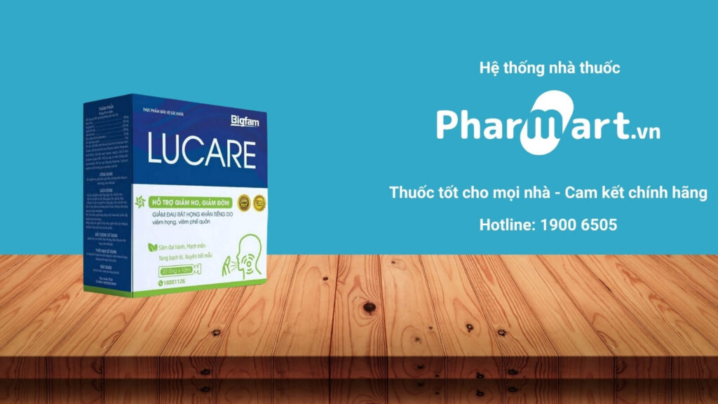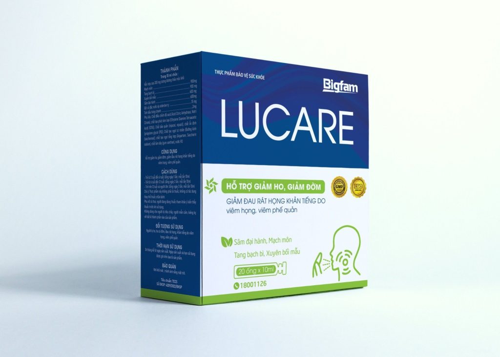 Lucare là sản phẩm bảo vệ sức khỏe thuộc thương hiệu Dược phẩm Bigfam, được nghiên cứu và sản xuất nhằm hỗ trợ giảm ho, giảm đờm, làm dịu cổ họng, giảm đau rát do viêm họng, viêm phế quản. Với thành phần từ thiên nhiên, Lucare mang đến giải pháp an toàn, lành tính cho người sử dụng. Sản phẩm được kiểm định chất lượng nghiêm ngặt, đạt tiêu chuẩn GMP và ISO, giúp người dùng yên tâm khi sử dụng.